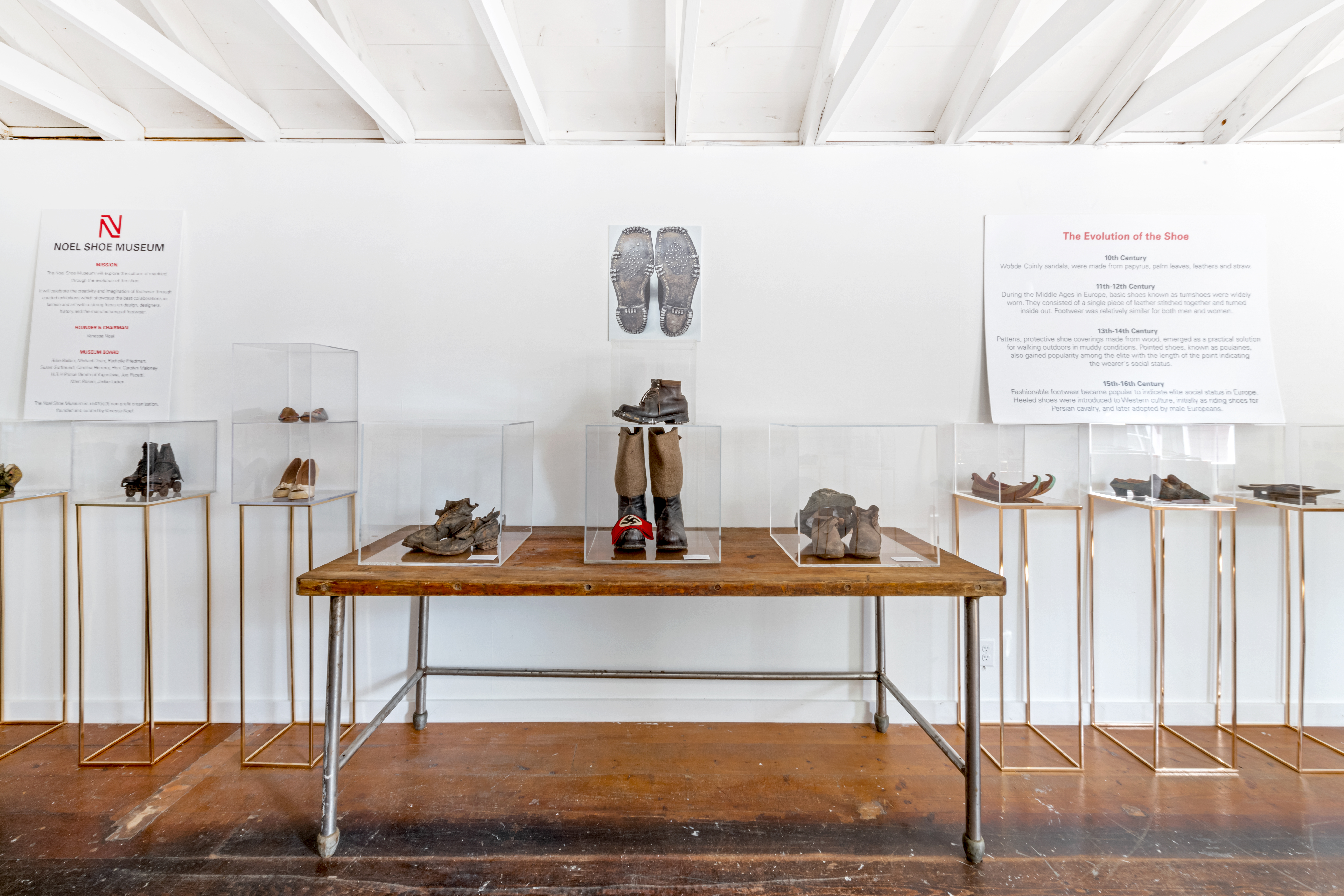 This summer the Noel Shoe Museum launched its highly anticipated pop-up exhibition on Nantucket Island. Showcasing a curated selection from the museum’s extensive permanent collection featuring over 4,000 shoes from the 10th century to the present, the exhibition offers a deeper understanding of the profound impact that shoes have had on human civilization worldwide. The exhibition also includes the museum’s exciting Icon Collection, featuring shoes from inspiring individuals and their incredible stories told through their footwear. The exhibition opened in July to the public with free admission. A resounding success, the exhibition was extended for an additional month and remained open through Labor Day.